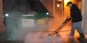 Our Glendale commercial pressure washing service specializes in dumpster and dumpster pad cleaning and sanitizing services. Call us today for a free quote.